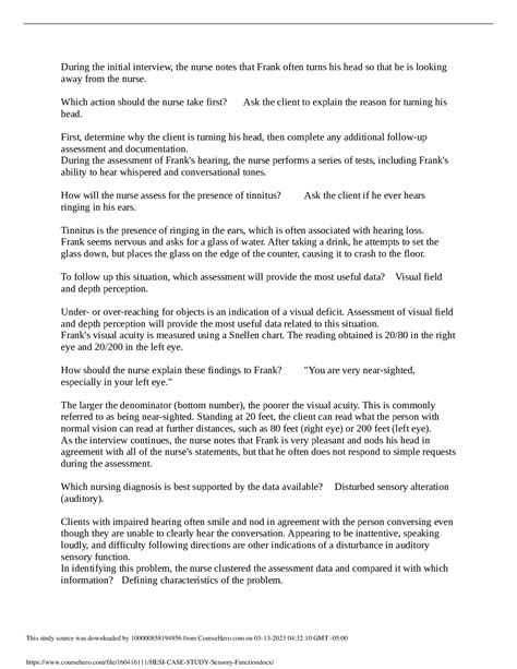 Download Evolve Hesi Case Study Sensory Function Ebook PDF